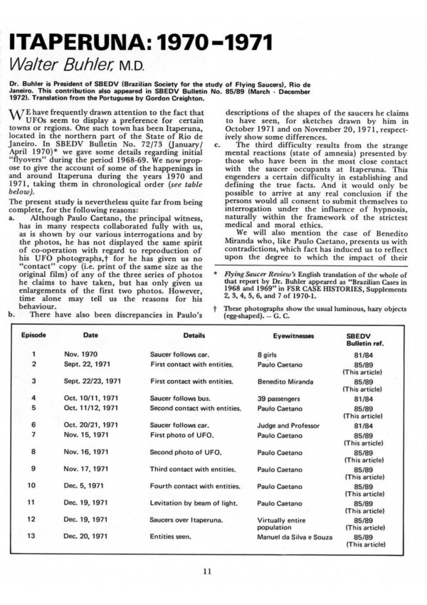 Buhler,UFO Teleportations 1970-71,Itaperuna,Brazil,FSR-SI 1973 N 5,UFO Encounters