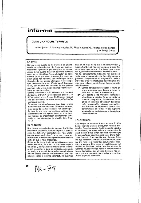 Casos OVNI 1973,Gerena-Cazalla,Sevilla