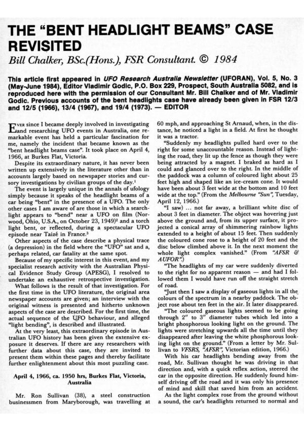 Chalker,1966 Bent Headlight Beams UFO,Australia,FSR87V32N4