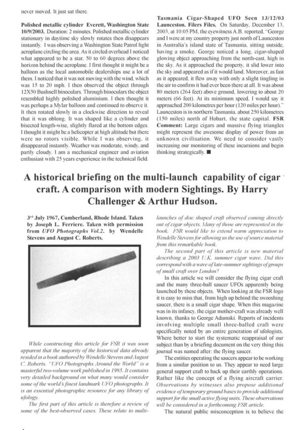 Challenger,Flying Cigars Sightings,FSR2003V48N4