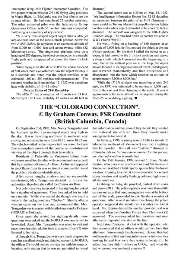Conway,UFOs 1995-1997,Vancouver,NORAD,FSR1998V43N3