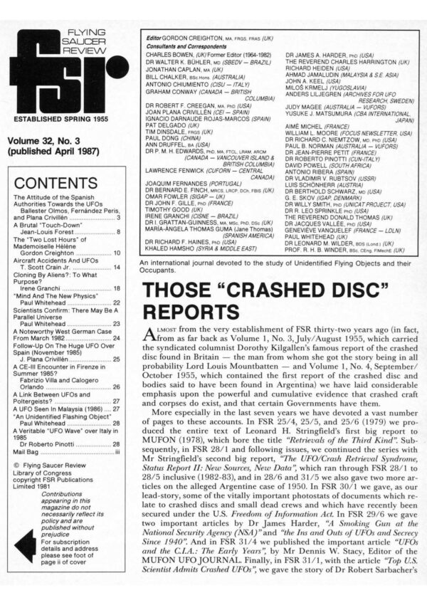 Creighton,Crashed Disc Reports,FSR1987V32N3