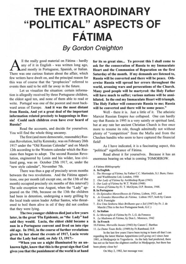 Creighton,Fatima 1917,Political Aspects,FSR95V40N3