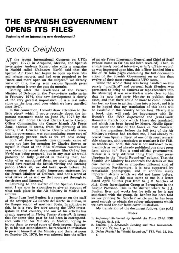 Creighton,Spanish Air Force opens UFO files,FSR77V23N3
