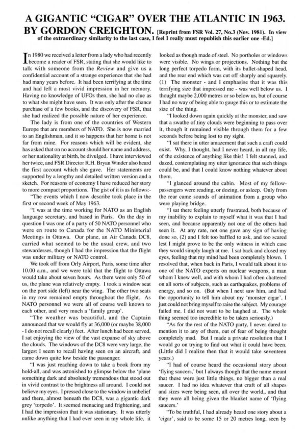 Creighton,UFO 1963,Atlantic Ocean,FSR2001V46N4