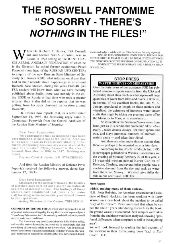 Wingfield,Santilli 1947 Roswell Film,FSR1995V40N2