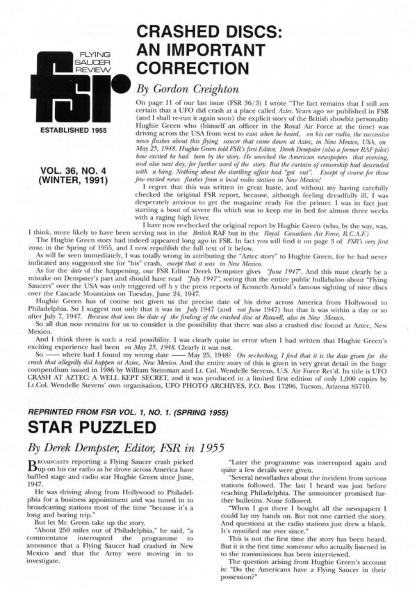 Creighton,UFO Crash 1948,Aztec,N.M.,FSR1991,V36N4