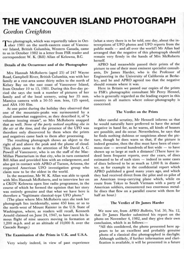 Creighton,UFO Photo 1981,Vancouver Island,FSR83V29N2