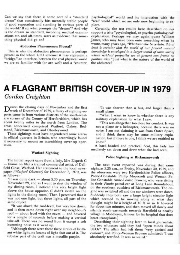 Creighton,UFOs 1979,England,cover-up,FSR85V30N3