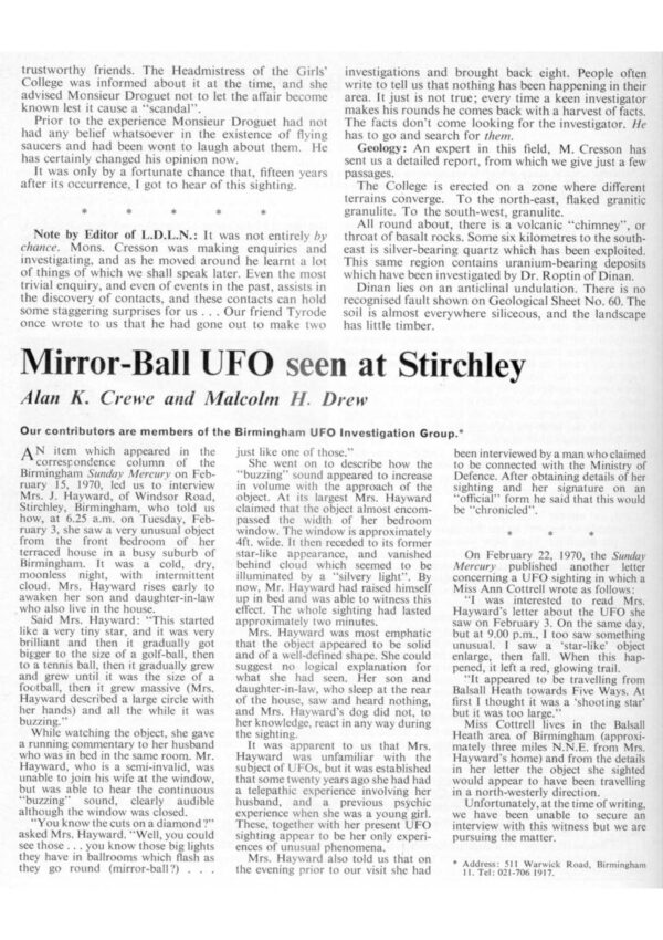 Crewe-Drew,UFOs 1970,Birmingham,FSR-CH 1970 N 1
