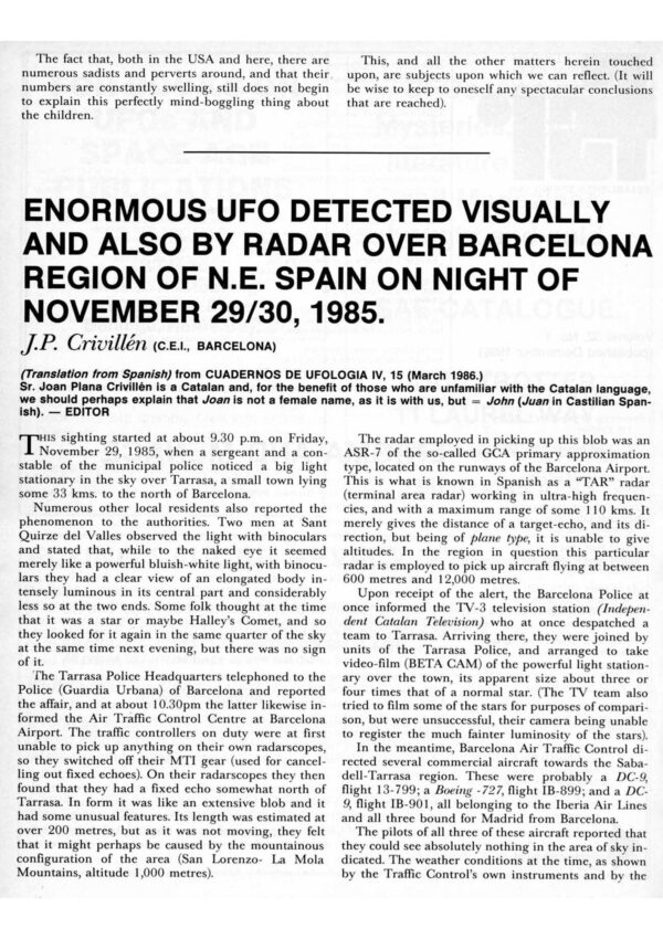 Crivillen,UFO 1985,Barcelona,FSR1986V32N1