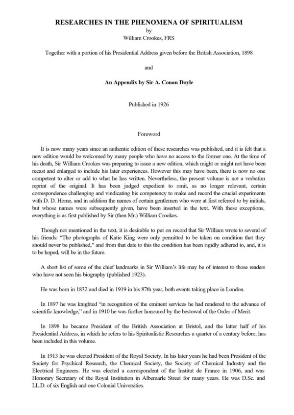 Crookes,William,Reseaches in the phenomena of spiritualism