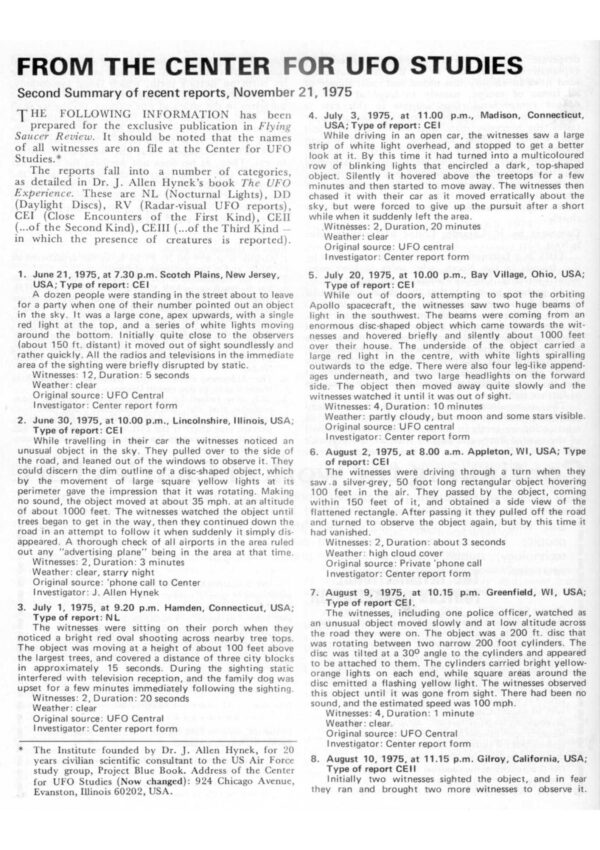 CUFOS,UFO Reports 1975,FSR75V21N6