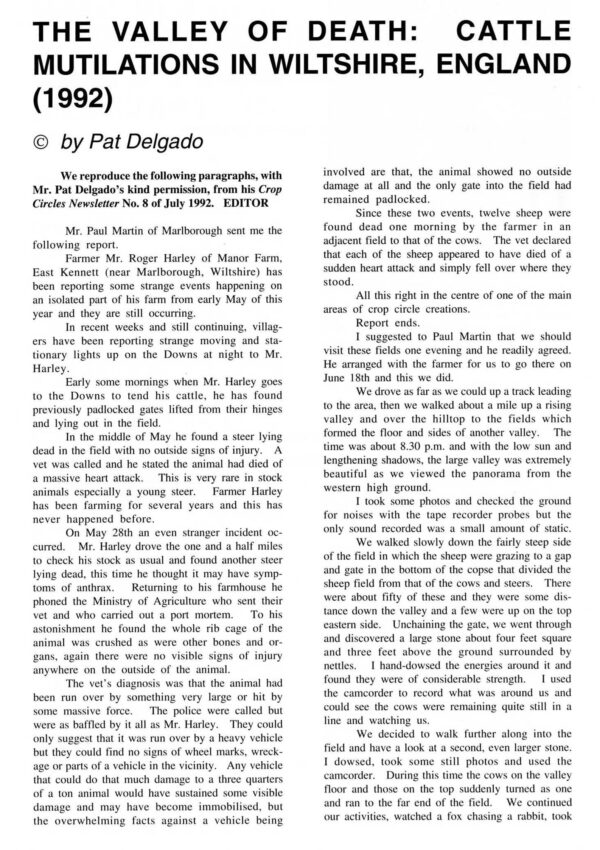 Delgado,1992 Cattle Mutilations near Crop Circles,FSR93V38N2