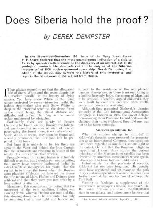 Dempster,UFO Crash 1908,Tunguska,FSR62V8N1