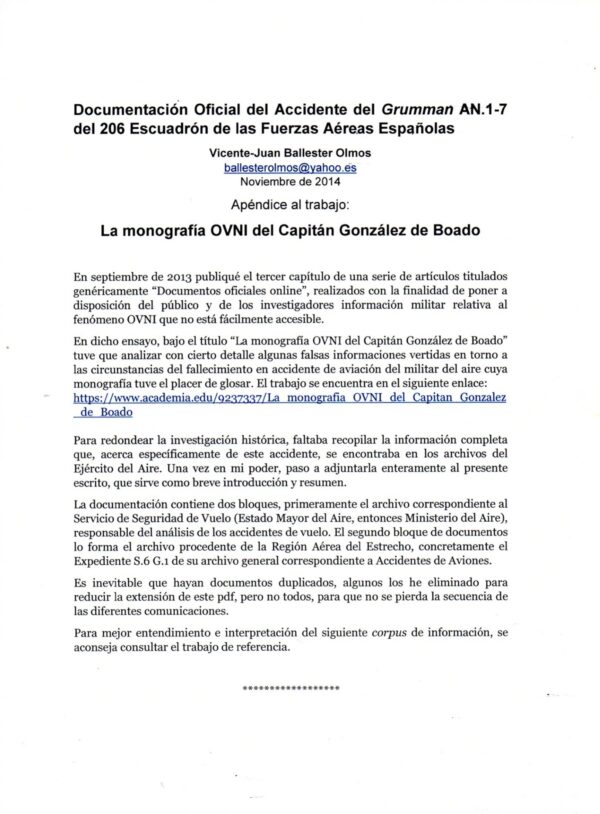 Documentacion oficial accidente Capitan A.G.Boado 1969 Ballester Olmos