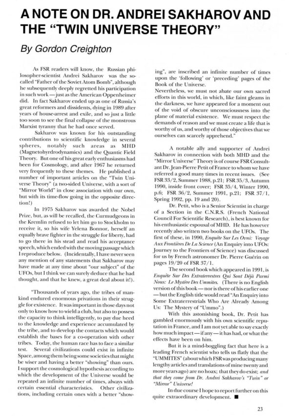 Dr.Andrei Sajarov,Twin Universe Theory,G.Creighton,FSR92V37N4