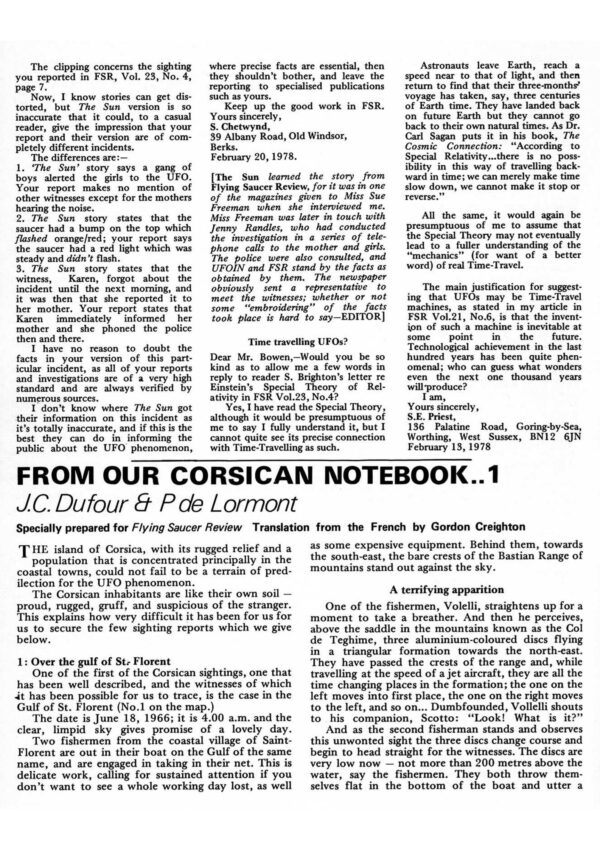 Dufour-Lormont,UFOs from Corsica Island,FSR78V23N6