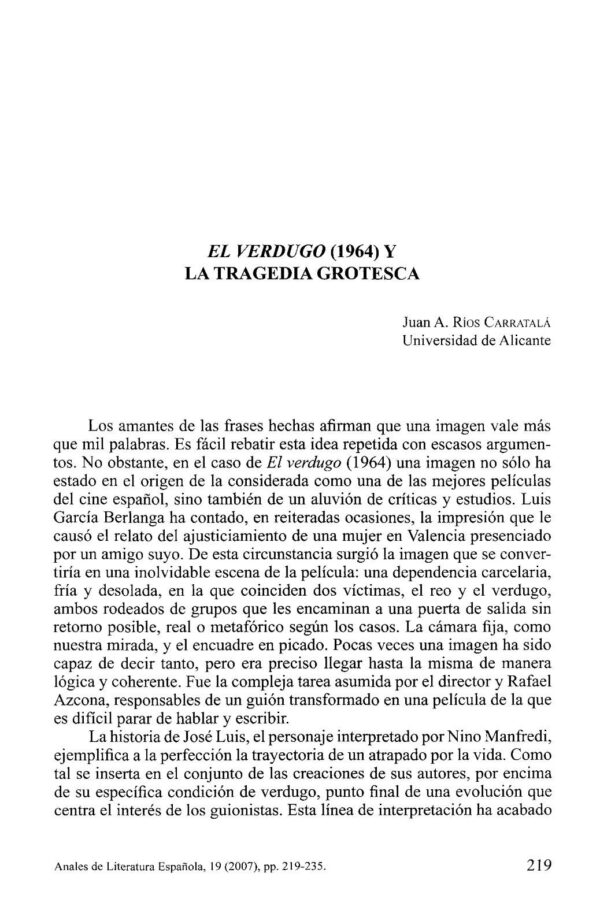 El verdugo 1964 y la tragedia grotesca,J.A.R.Carratala