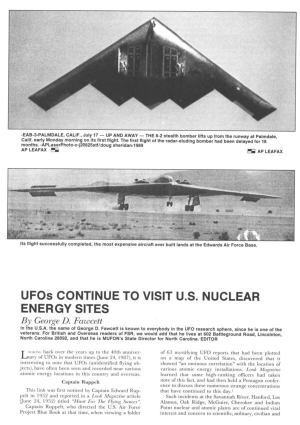 Fawcett,UFOs visit U.S.nuclear energy sites,FSR90V35N2