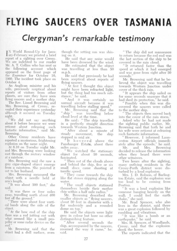 Flying Saucers 1960,Tasmania,FSR61V7N2