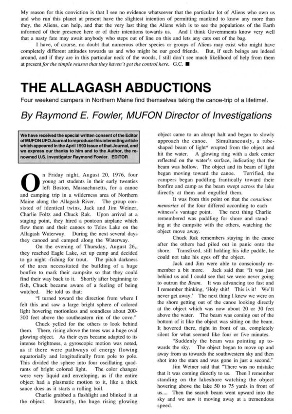 Fowler,1976 Allagash Abductions,Maine,FSR1993V38N4