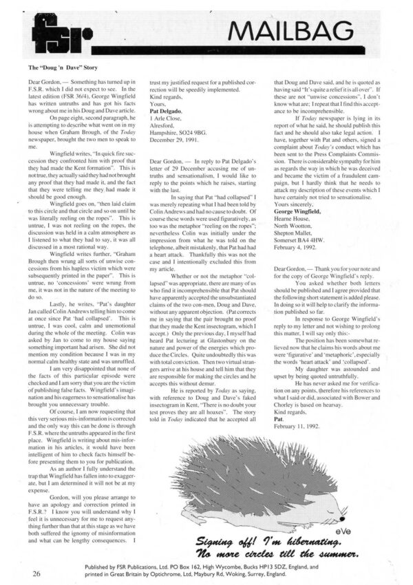 Wingfield,Crop Circles 1988 and UFO,England,FSR88V33N4