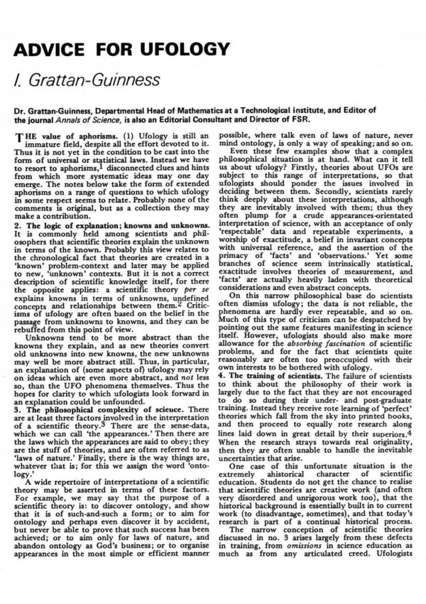 Grattan-Guinness,Advice for Ufology,FSR76V22N4