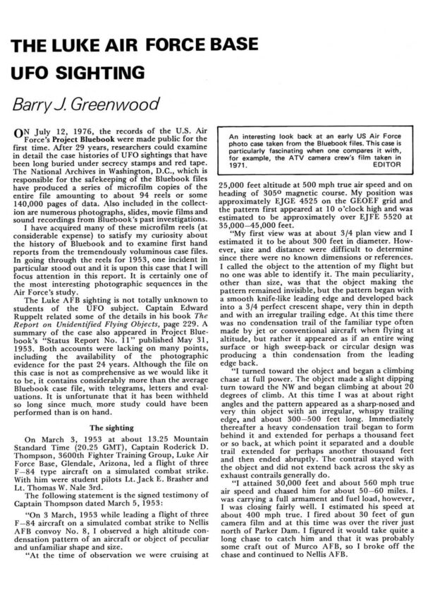 Greenwood,UFOs 1953,Arizona Air Force Base,FSR78V24N2