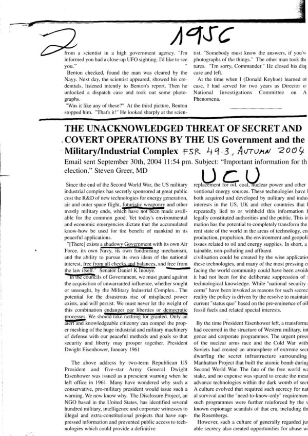Greer,UFOs,U.S.Government,military-industrial complex,FSR2004V49N3