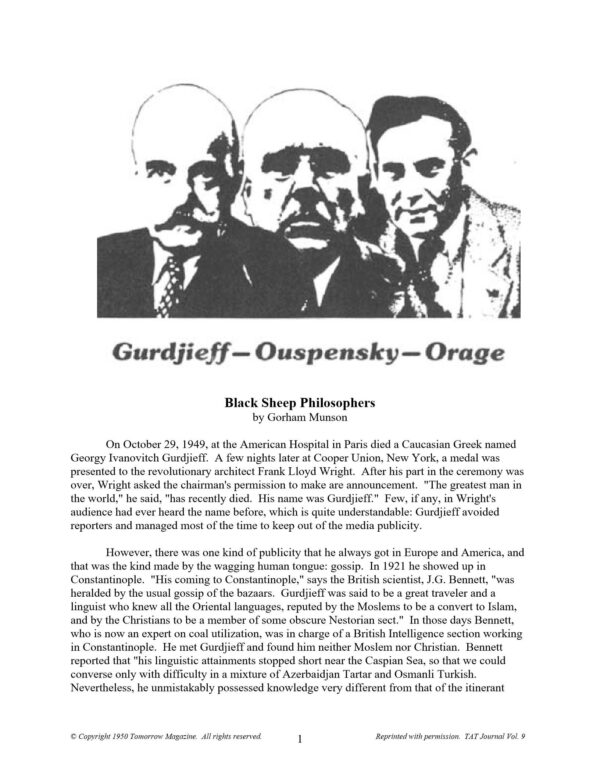 Gurdjieff,Ouspensky,Orage,by G.Munson