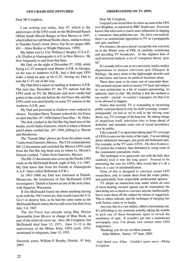 Wingfield,Santilli 1947 Roswell Film,FSR1995V40N2