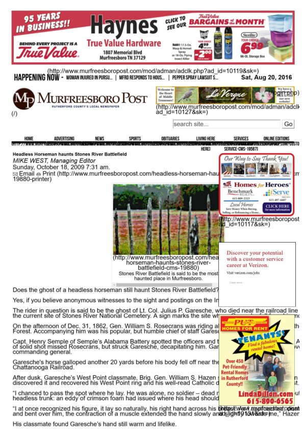 Headless horseman haunts Stones River battlefield(1862)