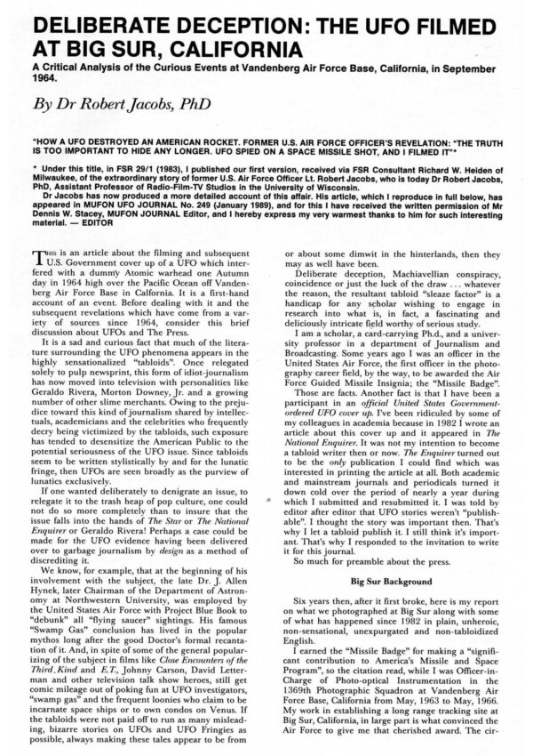 Jacobs,UFO 1964,atomic missile warhead,California,FSR90V35N2