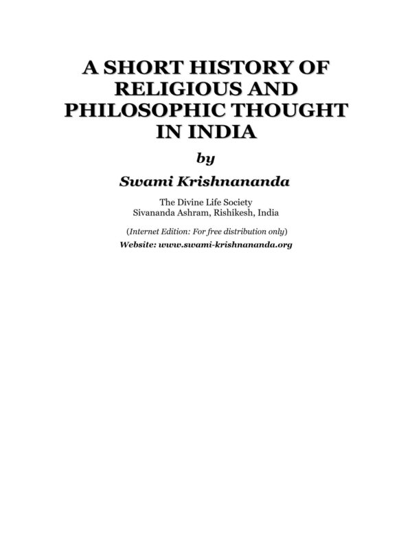 Krishnananda,History of religiuos and philosophic thought in India