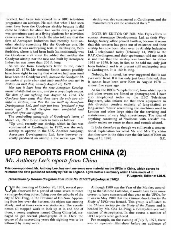 Lee,UFO Reports from China,FSR83V28N4