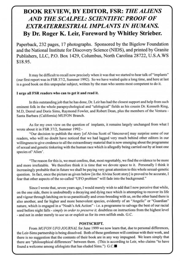 Leir,Aliens and Scalpel,Implants,G.Creighton,FSR1999V44N4