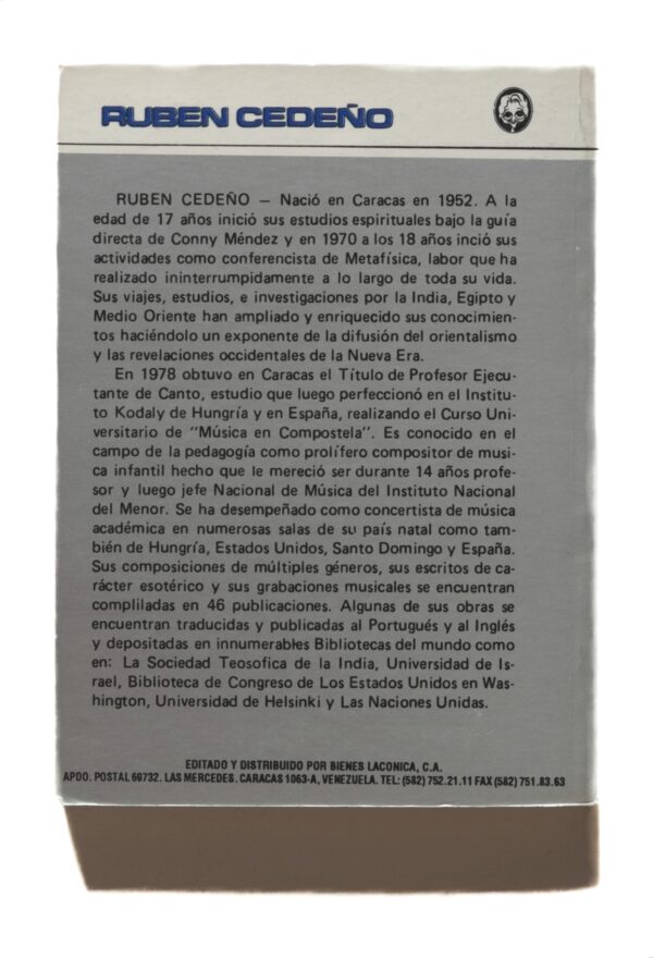 RUBEN CEDEÑO — Nació en Caracas en 1952. A la edad de 17 años inició sus estudios espirituales bajo la guía directa de Conny Méndez y en 1970 a los 18 años inició sus actividades como conferencista de Metafísica, labor que ha realizado ininterrumpidamente a lo largo de toda su vida. Sus viajes, estudios, e investigaciones por la India, Egipto y Medio Oriente han ampliado y enriquecido sus conocimientos haciéndolo un exponente de la difusión del orientalismo y las revelaciones occidentales de la Nueva Era.