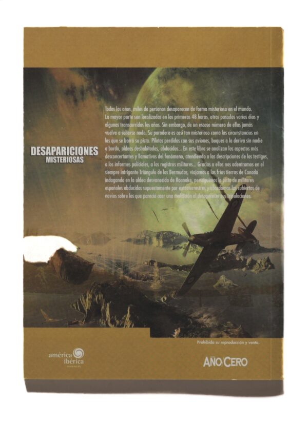«Todos los años, miles de personas desaparecen de forma misteriosa en el mundo. La mayor parte son localizadas en las primeras 48 horas, otras pasados varios días y algunas transcurridos los años. Sin embargo, de un escaso número de ellas jamás vuelve a saberse nada. Su paradero es casi tan misterioso como las circunstancias en las que se borró su pista. Pilotos perdidos con sus aviones, buques a la deriva sin nadie a bordo, aldeas deshabitadas, abducidos… En este libro se analizan los aspectos más desconcertantes y llamativos del fenómeno, atendiendo a las descripciones de los testigos, a los informes policiales, a los registros militares… Gracias a ellos nos adentramos en el siempre intrigante Triángulo de las Bermudas, viajamos a las frías tierras de Canadá indagando en la aldea desvanecida de Roanoke, perseguimos la pista de militares españoles abducidos supuestamente por extraterrestres y abordamos las cubiertas de navíos sobre los que pareció caer una maldición al desaparecer sus tripulaciones.»