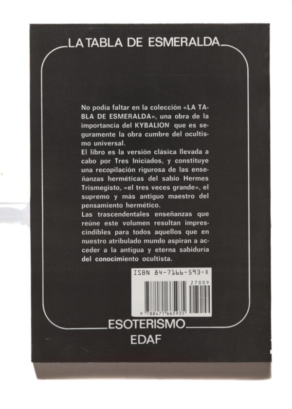 No podía faltar en la colección «LA TABLA DE ESMERALDA», una obra de la importancia del KYBALION que es seguramente la obra cumbre del ocultismo universal.