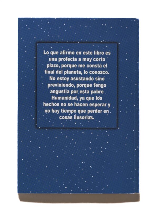 «Lo que afirmo en este libro es una profecía a muy corto plazo, porque me consta el final del planeta, lo conozco. No estoy asustando sino previniendo, porque tengo angustia por esta pobre Humanidad, ya que los hechos no se hacen esperar y no hay tiempo que perder en cosas ilusorias.»