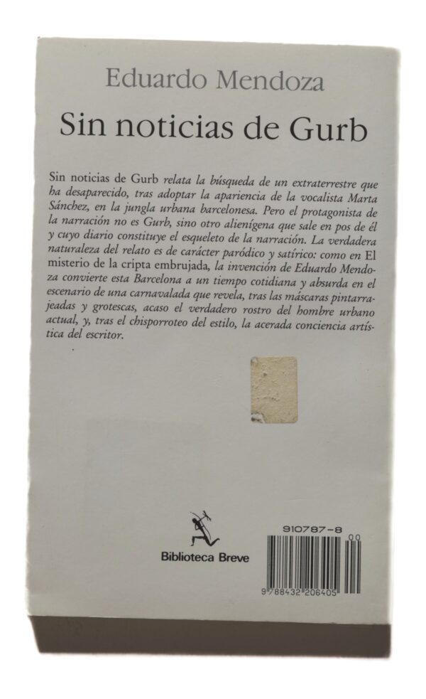 Sin noticias de Gurb relata la búsqueda de un extraterrestre que ha desaparecido, tras adoptar la apariencia de la vocalista Marta Sánchez, en la jungla urbana barcelonesa. Pero el protagonista de la narración no es Gurb, sino otro alienígena que sale en pos de él y cuyo diario constituye el esqueleto de la narración. La verdadera naturaleza del relato es de carácter paródico y satírico: como en El misterio de la cripta embrujada, la invención de Eduardo Mendoza convierte esta Barcelona a un tiempo cotidiana y absurda en el escenario de una carnavalada que revela, tras las máscaras pintarrajeadas y grotescas, acaso el verdadero rostro del hombre urbano actual, y, tras el chisporroteo del estilo, la acerada conciencia artística del escritor.