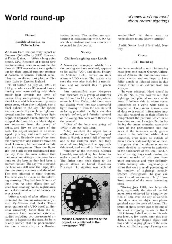 Lied,UFO 1981,Norwegian Children,Finland,FSR82V28N1