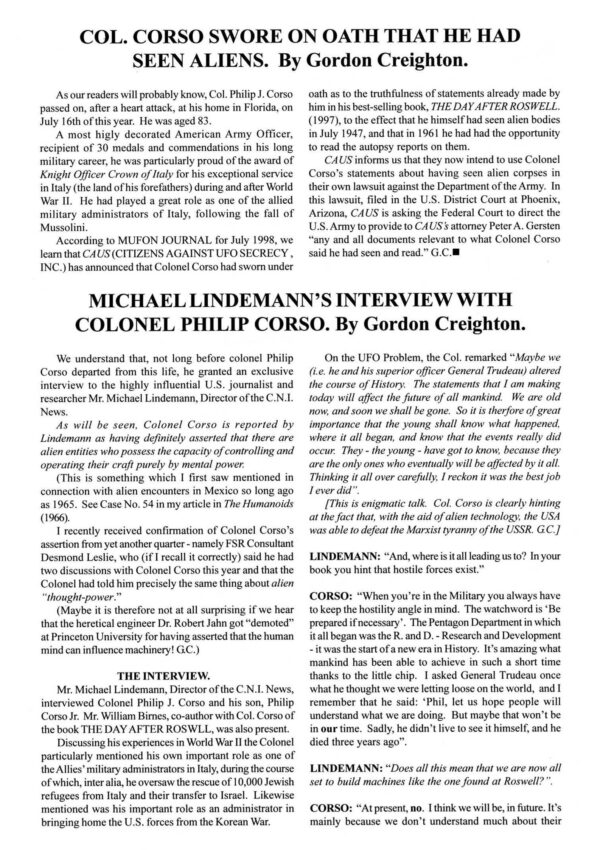 Lindemann,Interview Colonel Corso,FSR1998V43N3