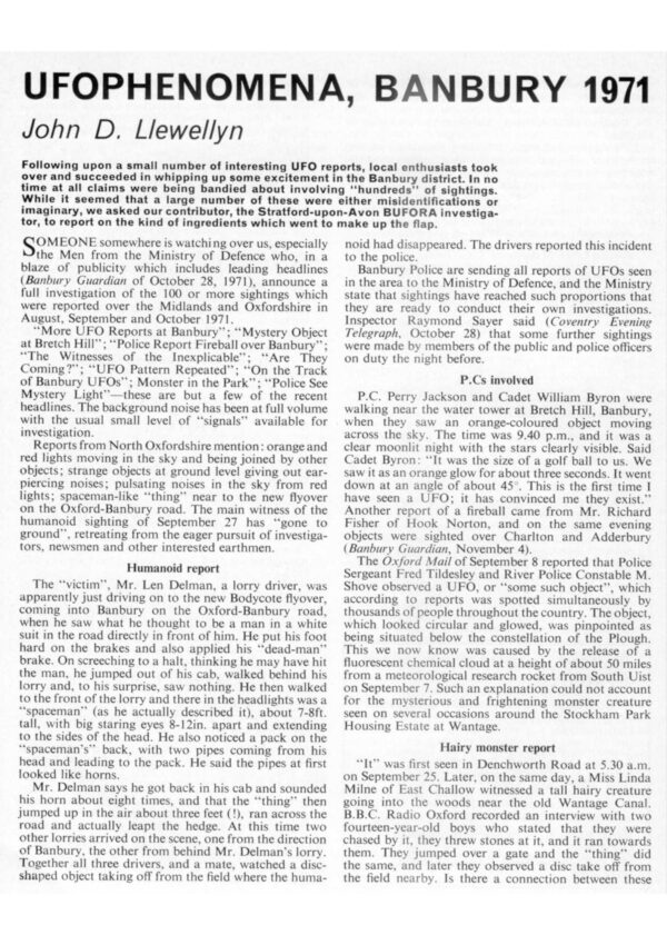 Llewellyn,Bigfoot and UFO 1971,Banbury,FSR72V18N1