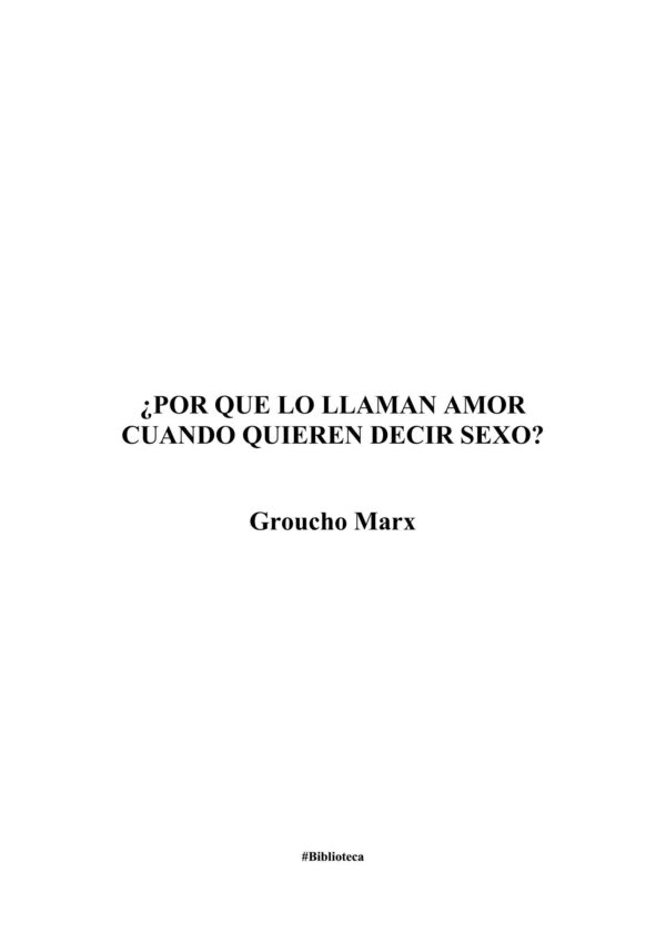 Marx,Por que lo llaman amor y no sexo