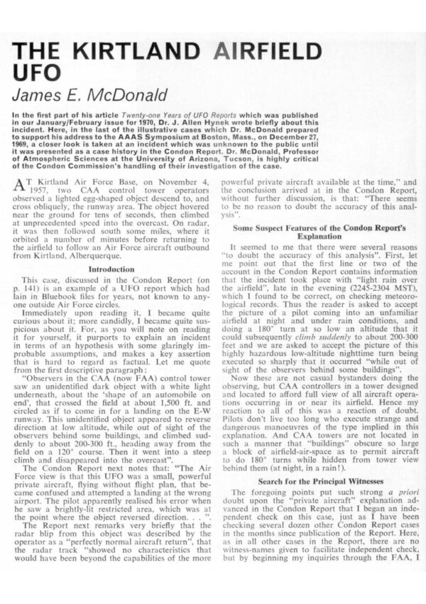 McDonald,UFO 1957,Kirtland AFB,FSR70V16N5
