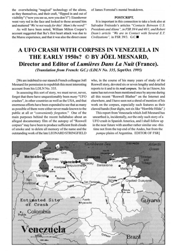 Mesnard,UFO Crash with corpses,1950s,Venezuela,FSR1999V44N3