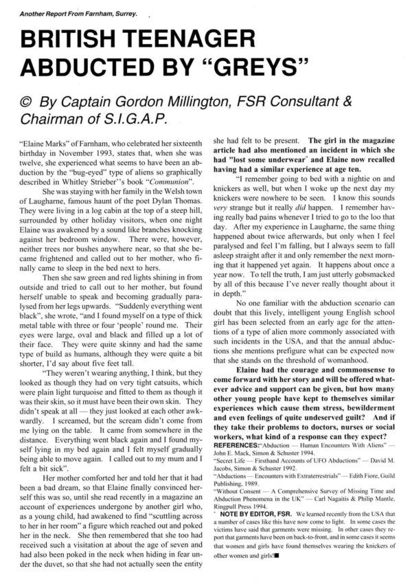 Millington,Abduction 1989,Britain,FSR1994V39N4