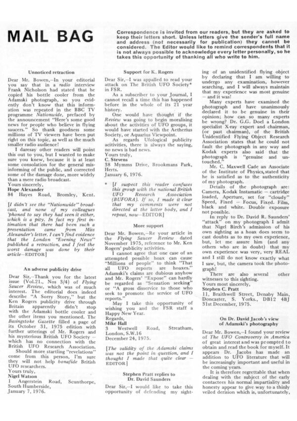 Wingfield,Santilli 1947 Roswell Film,FSR1995V40N2